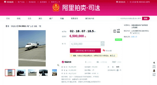 “济南高新技术产业开发区人民法院将于2020年4月13日10时至2020年4月14日10时止(延时除外)在济南高新技术产业开发区人民法院阿里巴巴司法拍卖网络平台上进行公开拍卖活动。”4月10日,齐鲁晚报·齐鲁壹点记者查询阿里司法拍卖平台了解到,拍卖标的是被执行人子午线通用航空有限公司所有的B-3011喷气式飞机一架。