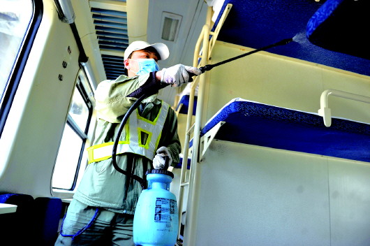 记者了解到,K4046次列车在始发前,列车乘务人员对全列公共区域进行一次统一集中消毒,运行途中每3小时给学生量一次体温,每两小时进行一次消毒,重点对茶水炉、洗手台水龙头、厕所等部位进行消毒。列车乘务人员将引导乘车学生全程佩戴口罩,减少车厢内走动流动频次。