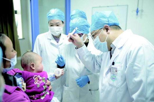 这天,昕昕的母亲抱着七个月大的女儿来到山东第一医科大学附属眼科医院院长史伟云教授的门诊:“史教授,您快看看我的孩子吧,她眼上长了一个肉瘤,瘤子长的很快,现在有硬币大小,眼睛已经不能闭合了,我们实在不想让孩子摘除肿瘤的同时失去眼球,您救救她吧。”昕昕母亲情绪很激动,差点要哭出声来。