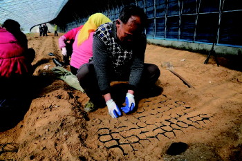 4月8日一大早,佃里院经济股份合作社理事长陈福明就来到村北的葡萄育苗大棚,这是葡萄苗发芽的第三天,他急着查看幼苗长势。