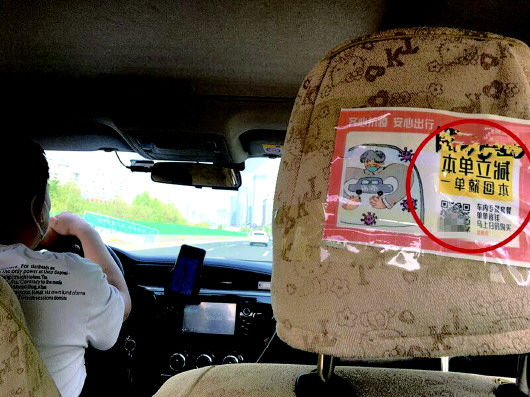 ◥济南不少网约车驾驶员把优惠券张贴在副驾驶后座,吸引更多市民打车。