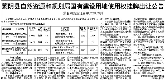 蒙阴县自然资源和规划局国有建设用地使用权挂牌出让公告