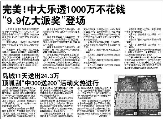 4月18日,泰安中出2注大乐透1000万一等奖;