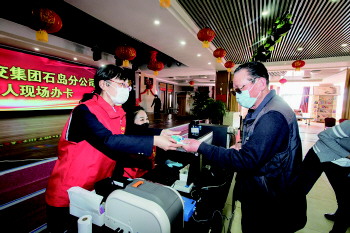 21日上午8点20分,石岛分公司6名党员志愿者到达虎山盛泉老年公寓,志愿者们携带电脑、读卡器、小票打印机等现场安装办卡设备。老人们有序排队,志愿者为老年人现场拍照、准备资料、介绍公交卡使用方法、解答出行换乘公交车等问题。10点20分,志愿者前往石岛盛泉老年公寓为老年人办理公交卡。