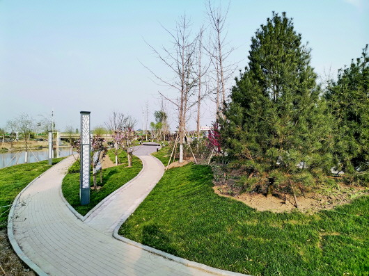 突出园林景观同时,坚持人性化设计,配套步道、座椅、小广场等服务设施,兼顾生态防护、休闲游憩、科普教育等多种功能,建设成为广大人民群众工作、居住场所之外的“第三生活空间”。