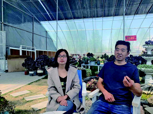 龚华丽夫妇在多肉植物大棚讲述自己的创业经历。