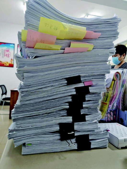 ◤甸柳社区住户基本情况统计表摞起来有半米多高。