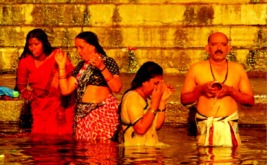 每天黎明,数以千计的朝圣者沿着河坛来到恒河(图自《浮世恒河》》