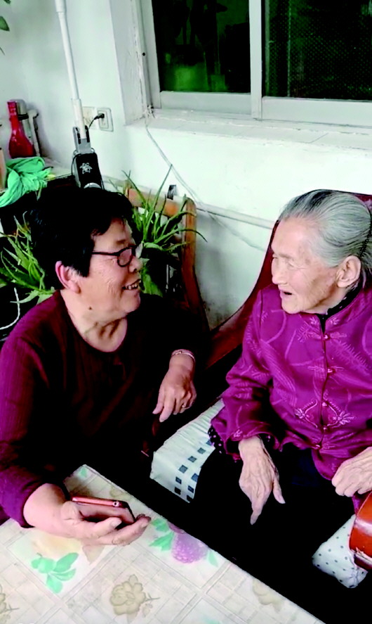 ◥70岁的贺青荣向92岁的婆婆车王氏送上母亲节祝福。