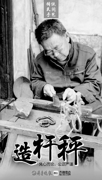 在电子秤无缝不入的年代,老式的杆秤似乎只能在街头小贩那里才能偶尔看到。造秤的老人不管这些,带着老花镜做的入迷,4月底的暖阳铺洒在小院里,64岁的唐安启从爷爷辈就做杆秤,他说,兄弟7人现在只剩下他这个老五还没有丢掉这门手艺,但能在赶集的时候卖个三四把,仍让他有坚持下去的动力。