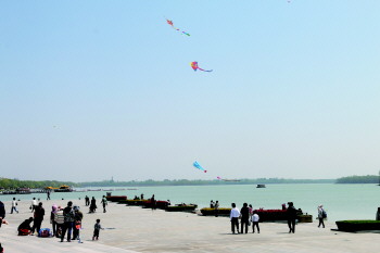 夏日的午后,一艘旅游观光船轻轻划过太白湖,惊起数只野鸭跃起。站在亲水平台向远方眺望,万亩水面碧波映日,太白湖犹如一幅秀美的生态画卷映入眼帘,游人如织,络绎不绝。