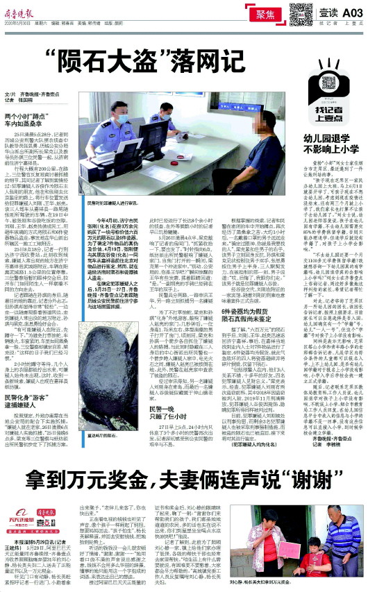 今年4月份,在历城公安华山派出所辖区,四名男子伪装成民工,砸碎车玻璃,将一块号称价值几百万元的“陨石”及瓷器盗走。5月26日至28日,齐鲁晚报·齐鲁壹点记者跟随华山派出所民警赶往济宁,成功将四名“陨石大盗”抓获。