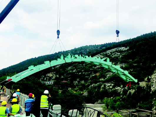 5月30日,历阳湖环湖步道工程拱桥完成了吊装。齐鲁晚报·齐鲁壹点记者 于悦 摄