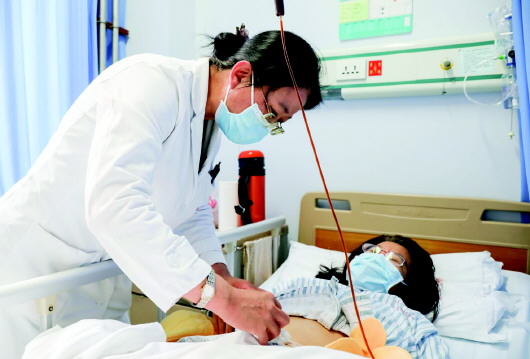 2014年滨州医学院烟台附属医院在烟台牟平区成立,刘国红作为医院引进人才使妇科的微创手术蓬勃发展,开展了所有腹腔镜四级手术,科室微创手术率达80%。2017年妇科腹腔镜手术经历由多孔向单孔发展的阶段,使得腹腔镜手术更微创,但也要求手术医生有更娴熟的腹腔镜手术技巧。始终秉承患者利益至上的刘国红,又一次在技术更迭中站在了前列。她凭借精湛的技艺,不断拓展单孔腹腔镜手术的范围:从巨大卵巢巧克力囊肿到多发子宫肌瘤剥除术,到大子宫切除术……越来越多的患者享受到她的单孔腹腔镜手术带来的便利。