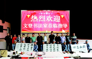 为大力弘扬传统文化,进一步加强军地文化交流,活跃军营文化氛围,5月30日上午,文登区文联、文登区退役军人事务局和文登区书法家协会联合组织5名书法家来到91951部队现场创作书法作品,捐赠给部队官兵。活动现场,书法家们聚精会神,笔走龙蛇,各展才艺,一幅幅翰墨佳作,让现场观赏的部队官兵零距离领略了中国传统文化的独特魅力,体会到书画家们对驻文部队官兵的深情厚谊。此次活动有效促进了军民融合、社会和谐安定,营造了新时代拥政兴军的浓厚氛围。