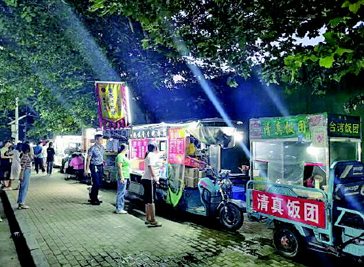 北新夜市已有23年历史,2008年由岱庙街道北新社区负责管理。据北新社区书记陈光义介绍,摊位老板大部分是下岗员工,还有部分残疾人,“这些群体干不了体力活,社区就想着把摊位先租给他们,赚点钱至少能补贴家用。”陈义光介绍,在做好疫情防控的前提下,今年4月开始,夜市逐渐开放,整条街能容纳300余个摊位,现出摊的已有200余个。