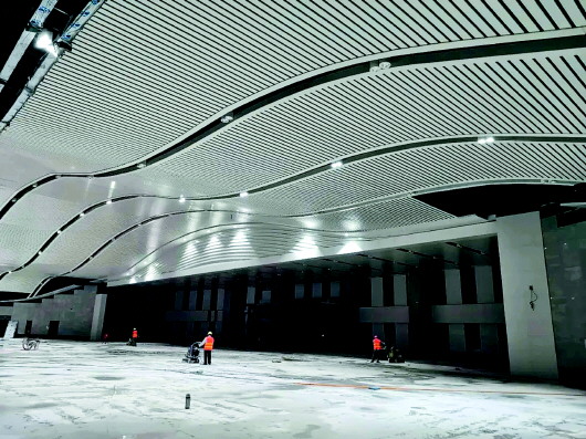 6月1日,记者在章丘火车站提升改造工程施工现场看到,主站房“墨泉突涌”形态已经显现,内部装饰作业正在如火如荼地进行。值得一提的是,大厅内顶部装饰经过不断优化,采用了喷涌若轮泉水形象,美观、灵动、大气。施工现场,近800名工人,分兵多路,正在紧张作业。
