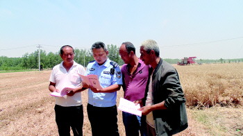 “麦收时节,天干物燥,火险等级高,请农民朋友不要在麦田使用明火,不要乱扔烟头,更不要焚烧秸秆、麦茬,防止麦田火灾发生”。为全面落实麦收期间防火安全措施,有效预防火灾事故发生,确保夏粮颗粒归仓。连日来,曹县公安局青堌集派出所组织民警深入田间地头,向农民传授麦收防火及灭火常识,有效增强了广大农民的消防法制观念和麦收防火安全意识,筑牢麦田“防火墙”。