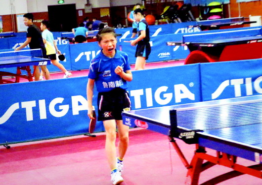 小乒乓球选手用汗水来浇灌自己的梦想。