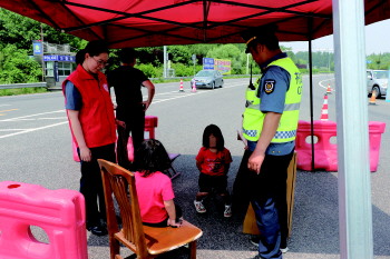 6月6日上午10:00左右,辛兴收费站收费四中队收费员邱岩正在值外勤,发现从入口车道走下来两个小女孩,车道上车来车往非常危险,她立即跑上前去将孩子安置到防疫区进行体温测量登记,并询问孩子的父母及原由,由于孩子年纪尚小只是反复地说:爸爸把她们从车上拽下来就开车走了。
