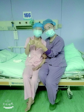 术后第十天,花季少女顺利出舱并与护士开心合影。
