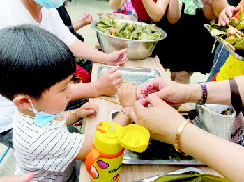 6月17日,青岛市市北区水清沟街道开展“我爱民俗”端午邻里爱心传递进网格活动。爱心志愿者们在海丰广场上现场教授大家包粽子和制作五彩绳的技巧,并采用线上“云直播”的形式,在线与社区邻居们进行互动分享交流。
