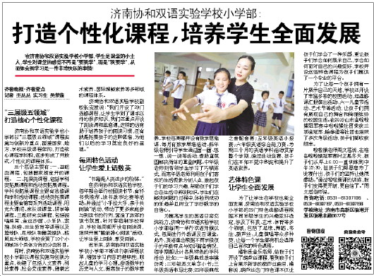 同时,济南协和双语实验学校小学部以课程实施与创新为重点,构建了包括人文素养、科技素养、社会交往素养、健康艺术素养、国际理解素养等多领域的课程体系。