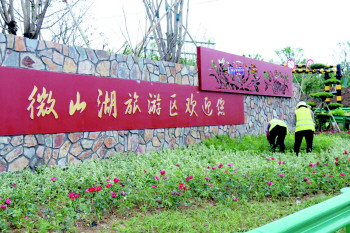 湖东堤旅游大道全长21公里,目前绿化工程已完成工程量的80%。路两边的行道树已经栽植好,沿线栽种早樱、晚樱、海棠、流苏、玉玲花、红枫、女贞等景观苗木。在微山湖创建国家5A级景区建设指挥部导览规划与人员培训组成员张磊看来,待工程完工后,湖东堤将实现春夏有花、四季常绿、堤上赏湖的景观效果,成为微山湖畔一道靓丽的交通线、生态线、景观线。
