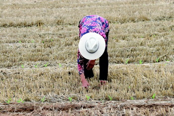 近日,齐鲁晚报·齐鲁壹点记者来到驻驾圈治理项目现场。平坦的农田上已长出玉米苗,村民李大娘正在田地里忙活。“刚种下也就一个多星期,下了这两场雨,现在玉米苗都长了出来。”望着田地里的玉米苗,李大娘说,今年庄稼收成好,刚收完的小麦,亩产都过了一千斤。