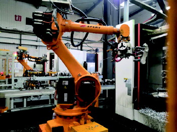 加工汽车配件的机器人手臂。
