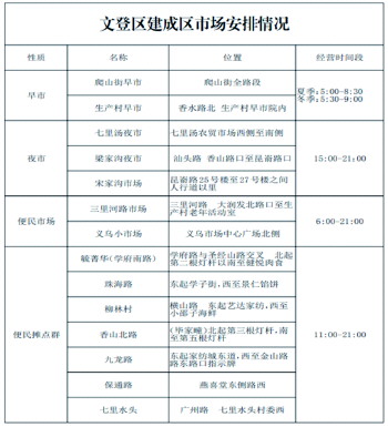《通告》明确了文登区建成区市场安排,确定了各市场位置和经营时间。