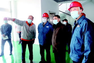 枣庄供电公司党委书记、副总经理王彦良(右三)登门服务山东正凯新材料公司复工现场