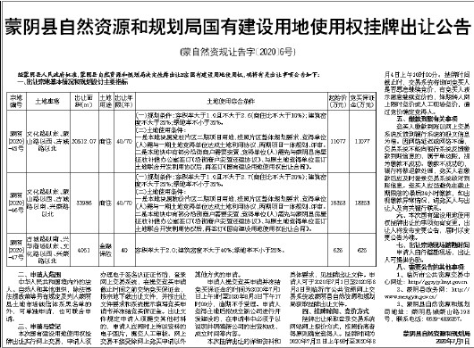 (蒙自然资规让告字〔2020〕6号)
