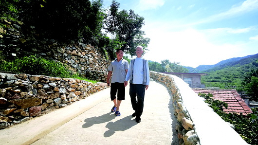 拦不住想上山的父亲,又担心这些一下雨就冲成泥的上山路,刘丰平干脆给父亲修了一条水泥路。“老人家90岁的人了,爱爬山爱活动,不修路真不放心,不下雨是道,下雨就成了一道道水沟。所以就齐心协力地修了一条路。”