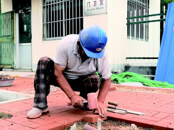 工人正在铺设人行道。