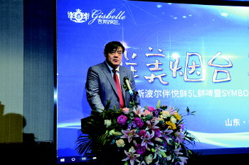 烟台吉斯波尔酿酒有限公司总经理张浜在致辞中介绍了吉斯波尔伴悦鲜5L波尔桶和SYMBOL单一麦芽威士忌两款产品并对公司的发展前景做了展望。