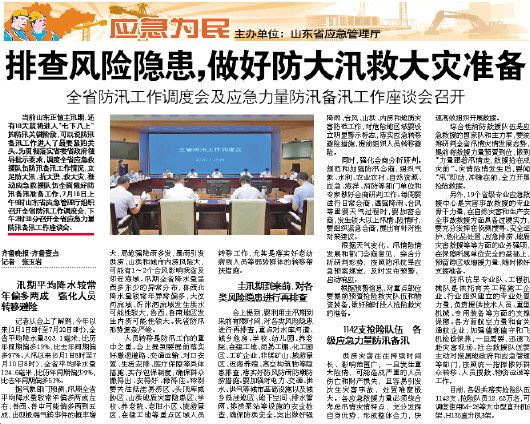 当前山东正值主汛期,还有10天就将进入“七下八上”的防汛关键阶段,可以说防汛备汛工作进入了最要紧的关头。为贯彻落实省委省政府领导批示要求,调度全省应急救援队伍防汛备汛工作情况,立足防大汛、抗大洪、救大灾,推动应急救援队伍全面做好防汛备汛准备工作,7月10日上午9时山东省应急管理厅组织召开全省防汛工作调度会,下午2时30分召开全省应急力量防汛备汛工作座谈会。