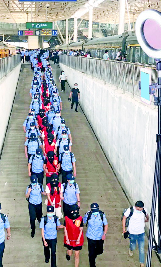 青岛警方展开了长达一年的深入侦查和线索拓展,于近日组织近500名警力辗转千里对8处涉案窝点集中收网,成功抓获涉案嫌疑人151名(其中30名已移交当地警方处理),依法扣押涉案电脑、手机、银行卡、账目材料等物品一宗。16日上午,专案组民警押解121名嫌疑人的多节车厢缓缓驶入青岛火车北站,标志着这起特大电信网络诈骗案抓捕行动圆满收官。