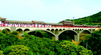 这座刚建成不久的“网红桥”安澜桥,北连岚山区阿掖山、南接南炮台,上跨岚山东路,全长206米。桥面建造古典楼阁和廊道,主跨顶部建造双层楼阁。在桥上,向西能观岚山区主城区,向东能瞰岚山港,是市民休闲的好去处。