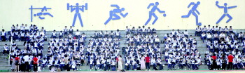 威海二中考点。学生进入考点后,在操场上继续复习功课。也许,他们并不知道围墙外还有父母家人的注视、守望。齐鲁晚报·齐鲁壹点记者 王震 摄影报道
