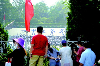 16日是中考的第一天,今年威海共有64977名考生参加考试。在威海二中(北校区)考点,虽然9点正式开考,但7时许考场外就聚集了许多家长,在围墙外守望孩子,直到考试结束。