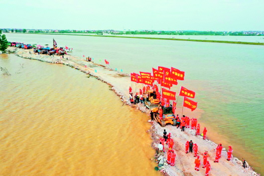▲18日上午,鄱阳中洲圩决口成功合龙。
