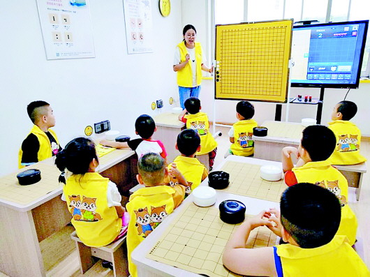 齐鲁晚报学弈棋院的老师正在给孩子们上课。
