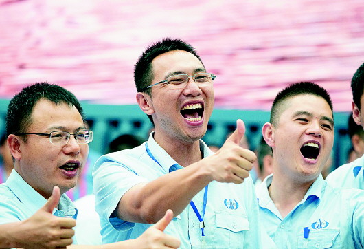 7月23日,在文昌航天发射场,航天科技人员庆祝发射成功。新华社发