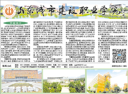 山东城市建设职业学院位于泉城济南,由山东省教育厅、山东省住房和城乡建设厅共管,山东省住房和城乡建设厅主管,其前身为创建于1980年的山东省城市建设学校。学院以“培育鲁班传人,建设美丽城市”为己任,是集全日制普通高职、继续教育为一体的公办高等职业院校。2016年被省教育厅评为“山东省技能型人才培养特色名校”,2019年被省教育厅评为山东省优质高等职业院校立项建设单位。