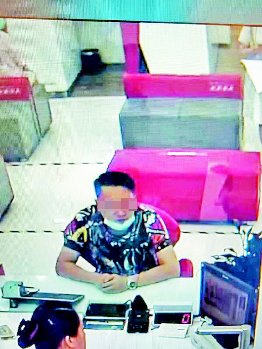 21日上午,4名民警来到一家沿街银行附近蹲守,闷热的天气让民警额头冒出绿豆般大小的汗珠。约1小时后,一辆白色轿车停靠在路边,一名年轻男子来到取款机前。“就是这个人,上!”在此守候的一名民警低声向身旁两位同事说,记者还未反应过来,三位民警已经冲入银行中。