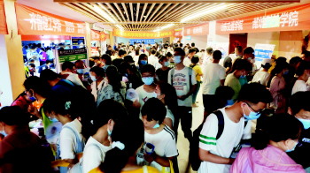 早八点,考生及家长便陆续抵达现场,为了确保会场安全有序,每位参与高招会的考生及家长需出示健康码,并全程佩戴口罩。