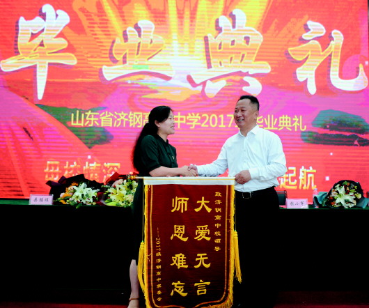 让每一名学生都在老师的关爱中成长,为学生终身发展负责。在学校的三年时间里,不少学生悄然发生着蜕变,从高一的“懵懂”变成了高三的“懂事”。在2017级高三毕业典礼上,家长代表王秀莲为学校送上“师恩难忘,大爱无言”锦旗,表达对学校的感谢,祝贺高三年级一模、二模屡创佳绩。