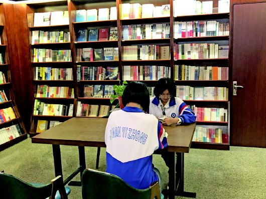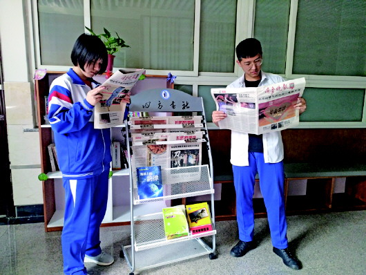 此外,学校在知新楼每层楼拐角及东走廊建有12处“四方书舍”读书阅览区,每个书舍的运营权由临近班级通过竞标取得,图书由学校图书馆提供。“我们还给书舍配了报架方便学生了解时事新闻,一个个布置精美、富有个性、温馨的阅览区成了学生们最喜欢的地方。”高彬说。