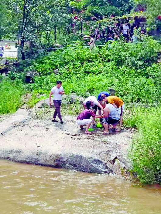 据悉,孩子当时是在上游没过水的小桥上玩时出的意外,“大概是有青苔,孩子一下子没站稳就滑了下去,家长可能也不太会游泳,当时就慌了神。”围观者说。
